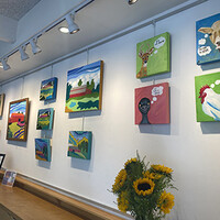The first show for the Art Gallery's 2024-2025 season features artist, and ERUUF member, Amy Wilson-Stronks. Her art expresses feeling and emotion through color and movement in representative and non-representative forms inspired by animals, farms, and nature. This show features Amy's "Barn" series and her "Animal Squares." Her Barn series was inspired by her Michigan barn and continues with scenic barns here in North Carolina. Amy's Animal Squares are fun, sassy, and whimsical; featuring each animal's personality and what they have to say. Ask her about a personalized Animal Square for your favorite pet!