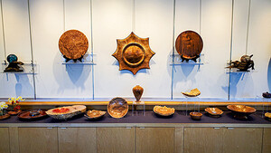 Steve explains, “One of the joys of the woodturning process is the gradual reveal of previously hidden textures and patterns as the wood blank is shaped and finished. Adapting the turned piece to highlight the evolving figure while maintaining a pleasing form allows the turner a unique opportunity for artistic expression.” The pieces in this exhibit have been selected to highlight the unique features of the finished work.