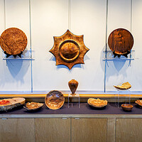 Steve explains, “One of the joys of the woodturning process is the gradual reveal of previously hidden textures and patterns as the wood blank is shaped and finished. Adapting the turned piece to highlight the evolving figure while maintaining a pleasing form allows the turner a unique opportunity for artistic expression.” The pieces in this exhibit have been selected to highlight the unique features of the finished work.