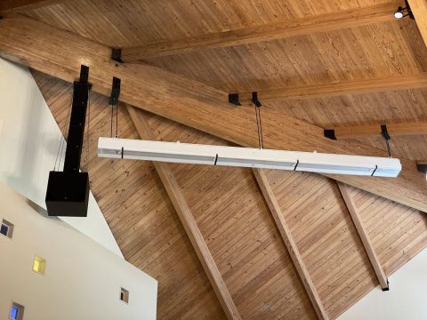 At the same time, this was a very productive week in the construction process. The new speaker array and retractable projection screen were both installed while additional electrical work continues. Next week we will begin integrating the new equipment with the current audio-visual systems (camera and soundboard). One key piece of the puzzle is the large projector, which may be delayed due to supply chain issues. We remain hopeful for a mid-September completion of the physical installation so the Sanctuary can transform from a construction zone to a more welcoming space.
