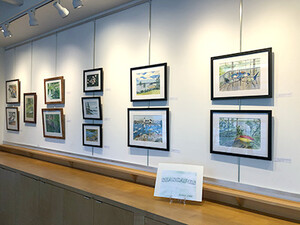 Seascapes is an exhibit that features watercolor paintings by ERUUF member, Sunny Ladd. The paintings depict three types of water scenes, one with salt water, ferries, and rocky beaches in Maine; another with lakeside views of herons, kayaks and reflections in New Hampshire, and a third of lagoons in Kerala, India.