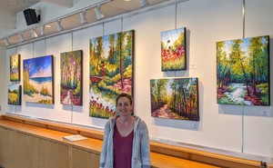 Karin Neuvirth is best known for her textural acrylic paintings of wooded landscapes which she refers to as treescapes. Her current style of painting involves many layers of paint which she applies with a palette knife utilizing the technique of using broken color to create a sense of movement within her work. Color is the most prominent element in her work. In order to form a more thorough understanding of color, she chooses to mix all of the colors that she uses from only the primary colors and white.